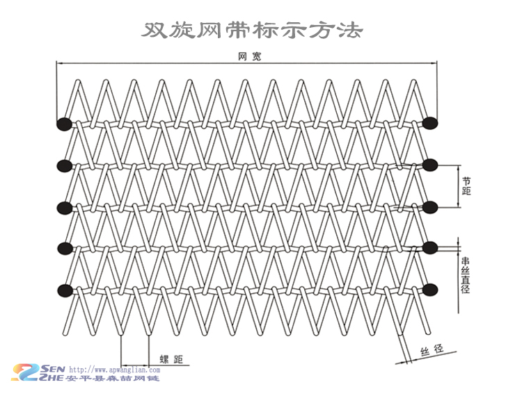 曲軸型雙旋輸送帶: 集中了金屬絲編織網帶的各種優點,由于具有彎曲較深的串條,使各個螺旋盤條的位置正確的定位,因此減少網帶的變型和延伸。